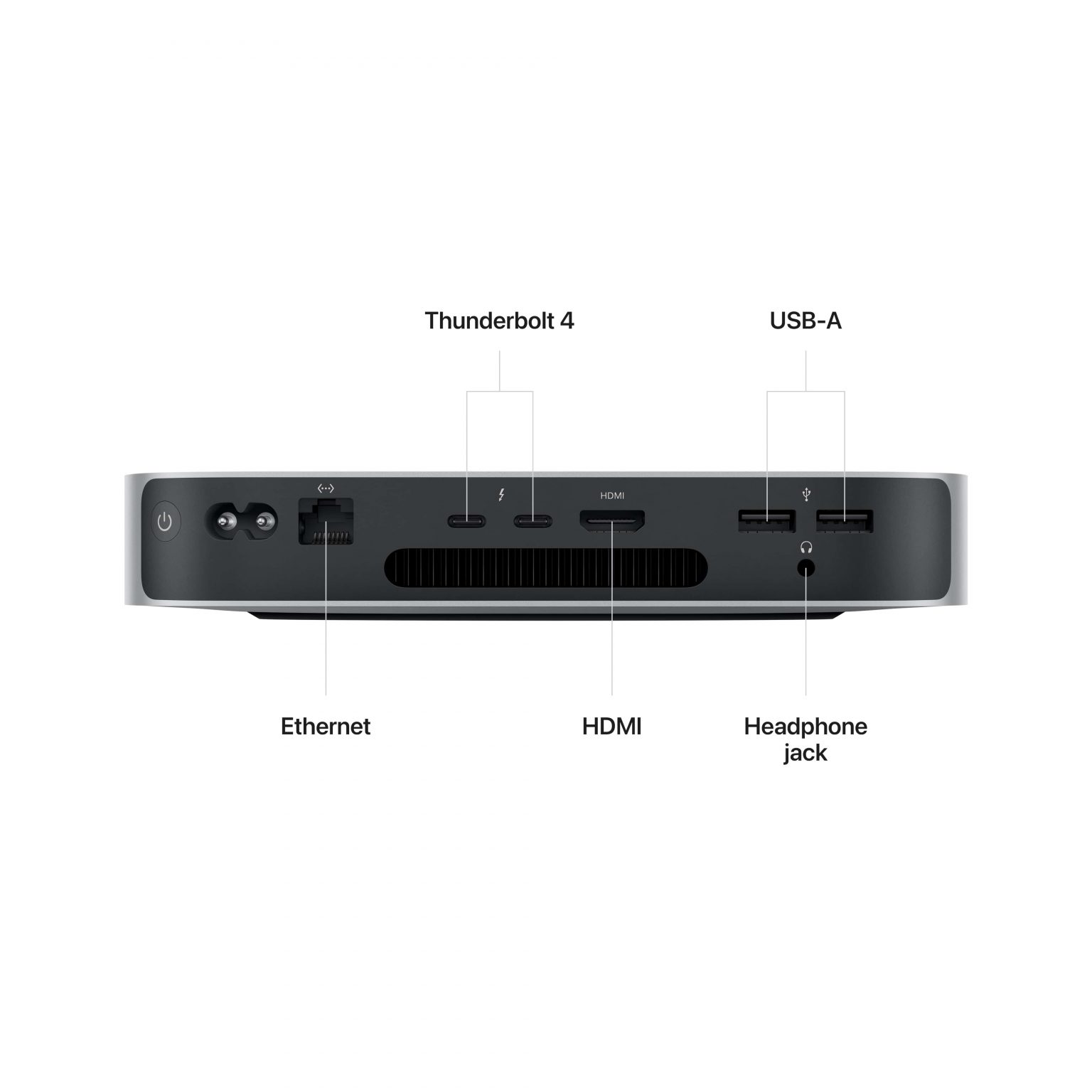 • Two Thunderbolt 4 ports, one HDMI port, two USB-A ports, headphone jack, Gigabit or 10Gb Ethernet