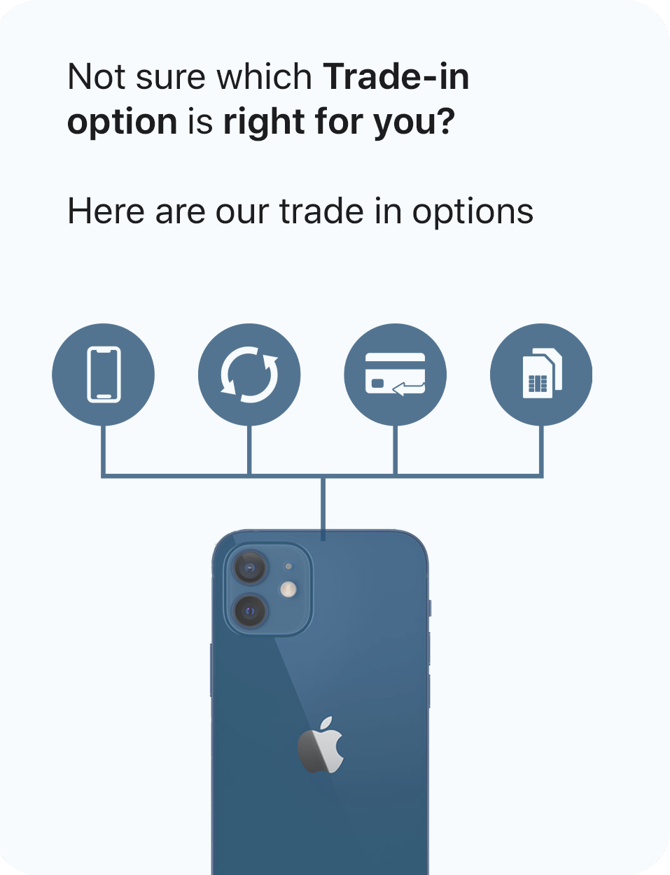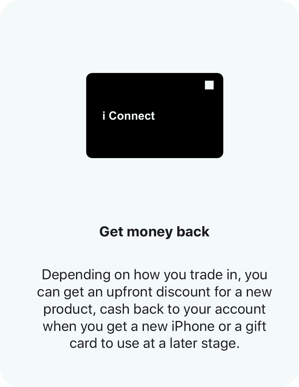 Trade in your previously loved iPhone, Mac, iPad, Apple Watch, Android phone, or Windows Laptop. Use the trade-in value as credit towards your new product, get cash back into your account when you get a new iPhone or receive an iConnect gift card.